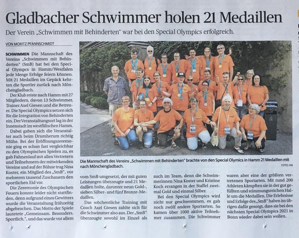 Artikel über die Teilnahme der Sportschwimmer an den Special Olympics in Hamm.